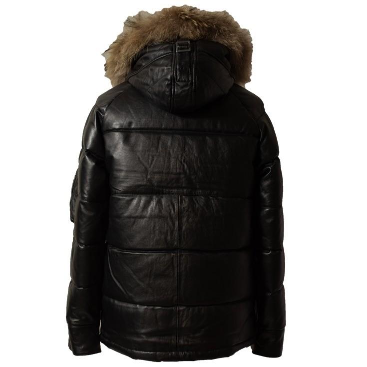 - メンズ > ジャケット・アウター > Luigoo Leathers ブラックレザー ダウンジャケット Liugoo Leathers 本革 N-3Bフライトジャケット レザーダウン メンズ
